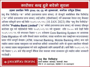प्रभु बैकको बैंकिङ सेवा ५ दिन बन्द हुने