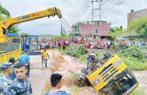 वीरेन्द्रनगरमा विद्यार्थी बोकेको स्कुल बस दुर्घटना