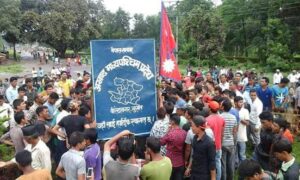 सरकारले गरेको पुनर्संरचनाको निर्णय विरुद्धमा सुर्खेतको वीरेन्द्रनगरमा ठुलो आन्दोलन सुरु भयो। नेपाली काँग्रेस, नेकपा एमाले र नेकपा माओवादीको संयुक्त संयन्त्रले राज्यको पुनर्संरचना गरेकोले सुर्खेत जिल्ला पार्टीहरू माउ पार्टी (केन्द्र) र सरकारका विरुद्धमा बाफ फाल्ने अवस्थामा थिएनन्।
