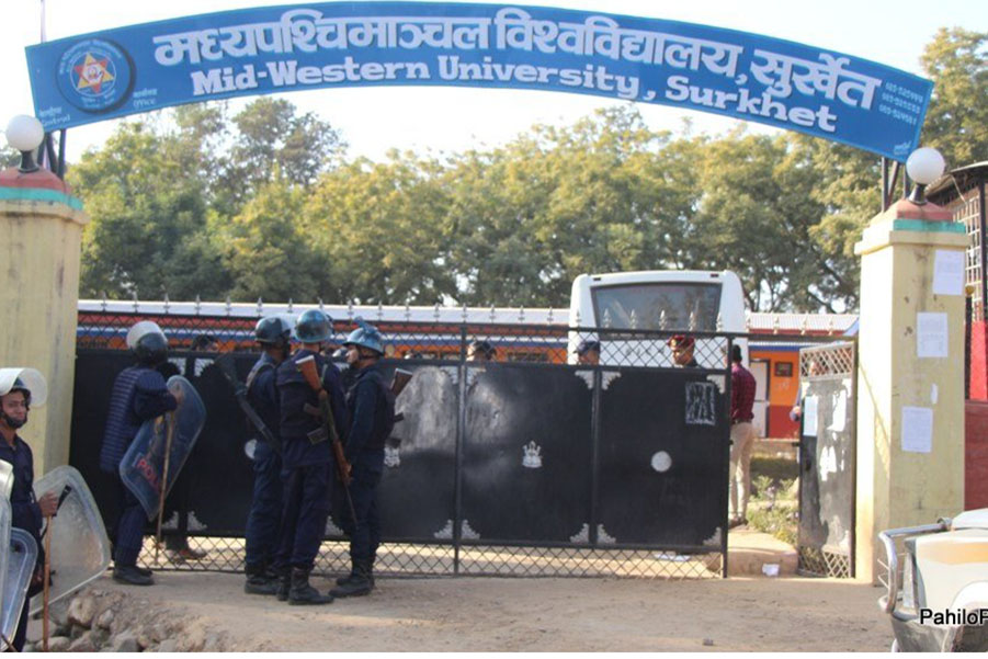 शान्ति भन्दा धेरै समय अशान्ति मै वित्ने गरेको मध्यपश्चिम विश्वविद्यालय शान्त भएको धेरै दिन भएको छैन । विश्वविद्यालयमा तालाबन्दी भएको अवस्थामा उक्त विश्वविद्यालयका रजिष्ट्रार डा. नारायणप्रसाद पौडेलले वुधवार (आज) साँझ ५ वजेसम्म आन्दोलनकारीहरुलाई ताला खोल्न अल्टिमेटम दिएका छन् ।