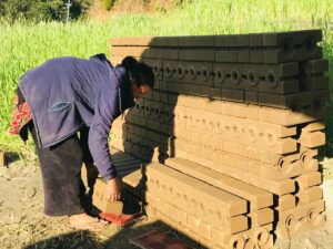 उक्त निर्माण कार्यमा प्रयोग हुने इँटा बनाउन आफूले तालिम सिकेर लागेको उनले बताइन् । ‘अहिले नै केही विक्री भएको छैन । घरहरू निर्माण भएपछि माग हुन्छ होला’, उनले भनिन्, ‘त्यही भएर म अहिलेदेखि नै बनाउनमा व्यस्त छु ।’ उनले थपिन्, ‘घरको काममा पनि व्यस्त हुनुपर्छ नत्र दैनिक १०० भन्दा बढी इँटा बनाउँथें । यी ब्लकहरू विक्री भएमा कमाइ राम्रै हुन्छ जस्तो लागेको छ ।’