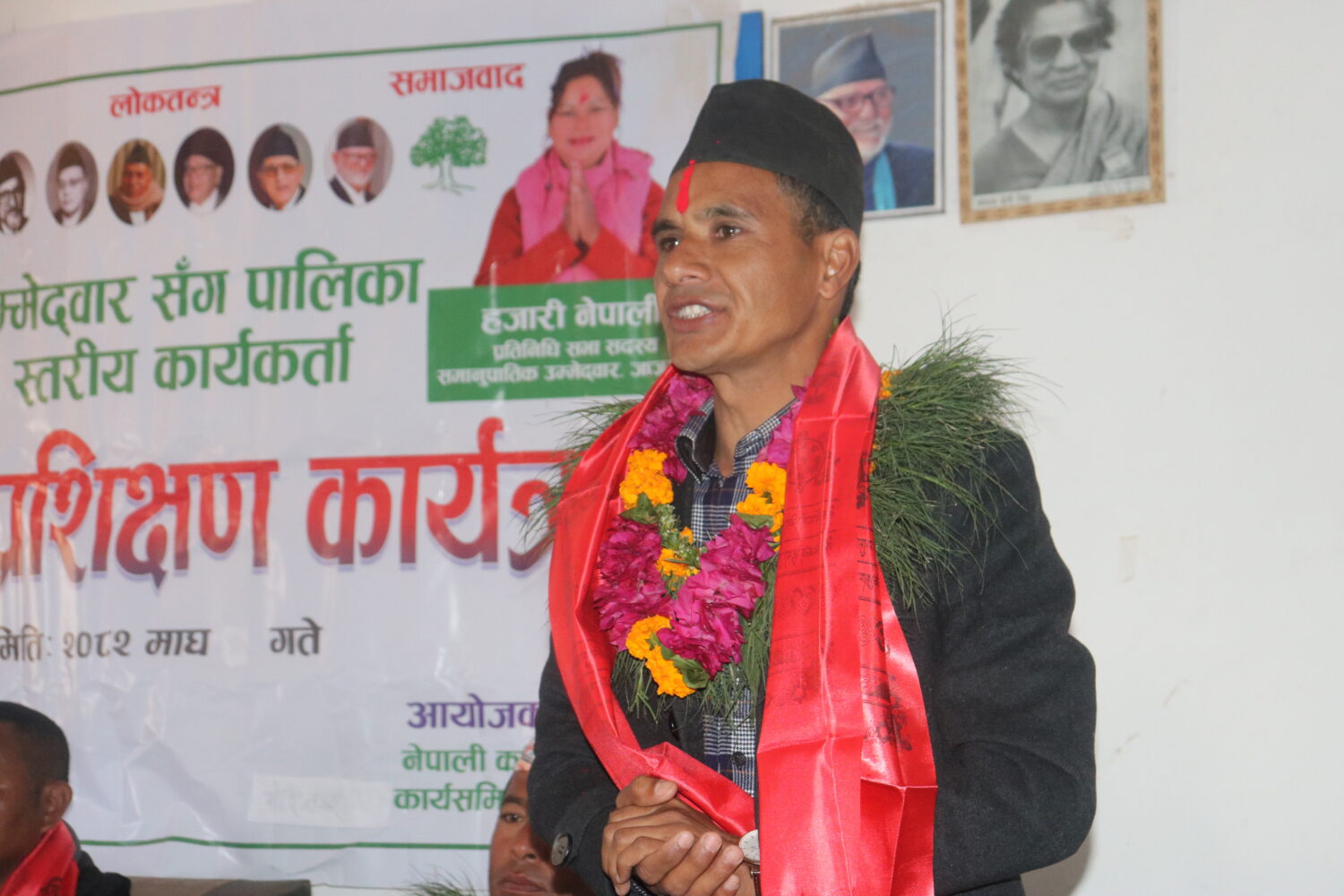 उनले जाजरकोटमा कांग्रेसको जीत निश्चित रहेको दाबी गर्दै कांग्रेस चुनावका बेला मात्रै होइन, दुःख–सुखमा सधैं जनतासँगै रहने पार्टी भएको बताए। ‘भूकम्पको बेला सबैभन्दा अगाडि नेपाली कांग्रेस र आफु उद्धार तथा राहत कार्यमा पुगेको दाबी गरे।