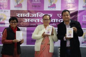 पुस्तक सार्वजनिक कार्यक्रममा लेखक म्यागी डोयन, अम्विका गिरी, महेश नेपाली लगायतका लेखक तथा साहित्यकारहरुले पुस्तकमाथि चर्चा परिचर्चा गर्दै पुस्तककाे प्रसंशा गरेका थिए।