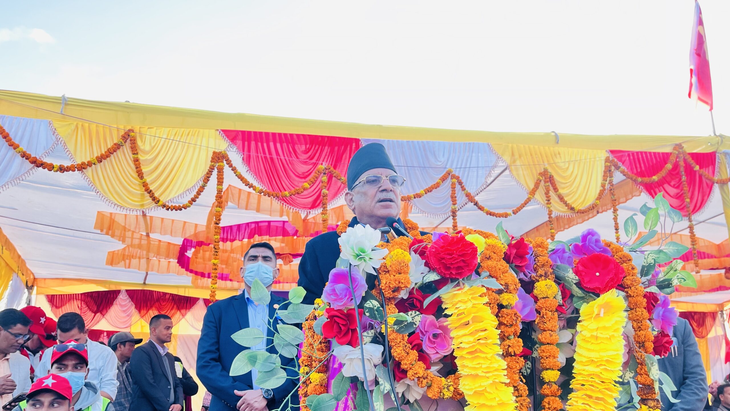 वीरेन्द्रनगरमा आयोजित एकता सन्देश सभालाई सम्बोधन गर्दै प्रचण्ड/ तस्बिर : कुलेन्द्र शाही
