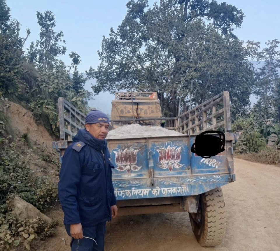 सुर्खेत । चौकुने गाउँपालिका–४ झालास्थित कर्णाली नदीबाट बिना अनुमति बालुवा उत्खनन गरी ट्र्याक्टरमा लोड गरेर लैजाँदै गरेको अवस्थामा प्रहरीले एक ट्र्याक्टर नियन्त्रणमा लिएको छ।प्रहरी चौकी बिजौराबाट प्रहरी सहायक निरीक्षक डिल बहादुर बस्नेतको कमाण्डमा खटिएको प्रहरी टोलीले अवैध रूपमा बालुवा ओसारिँदै गरेको ट्र्याक्टर फेला पारी बालुवासहित नियन्त्रणमा लिएको हो।