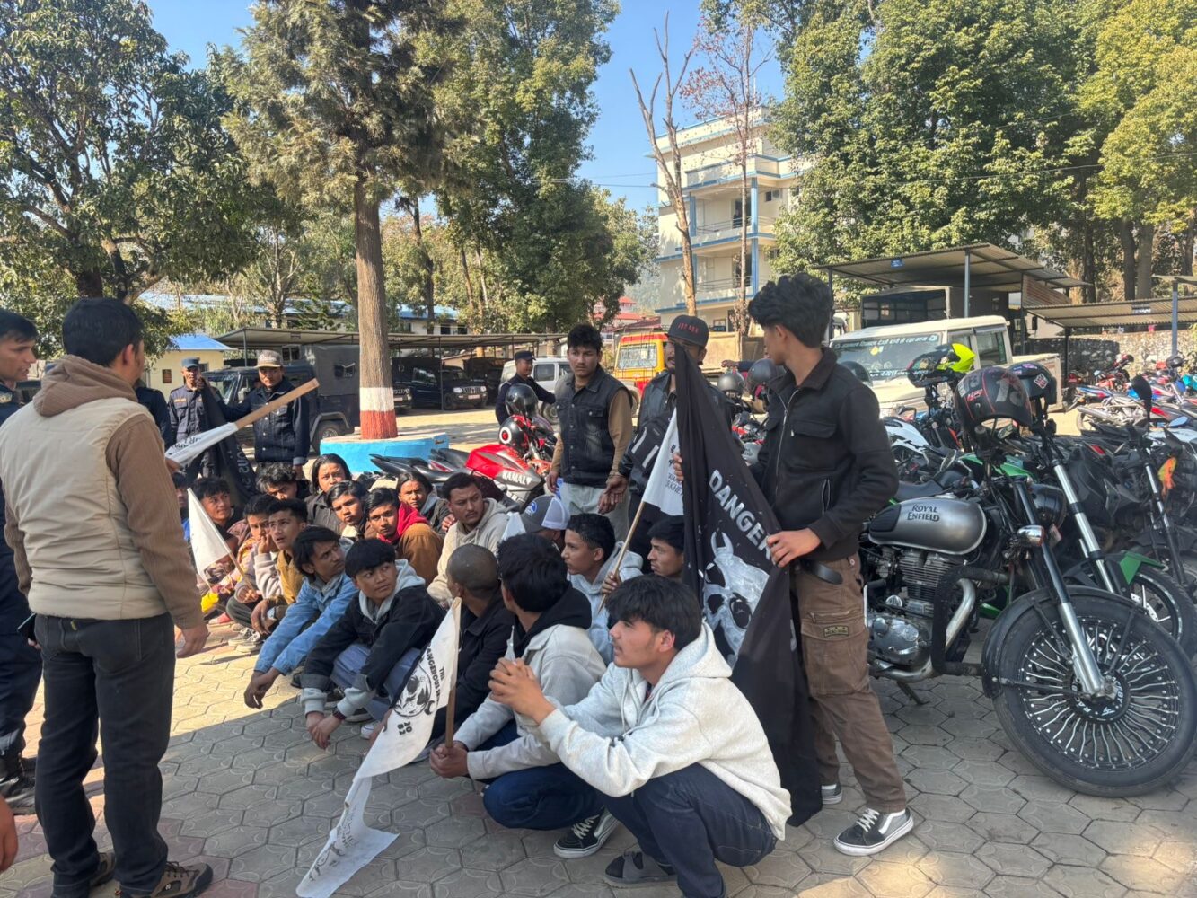 सुर्खेत। सुर्खेतको वीरेन्द्रनगरमा स्थानीय प्रशासनको अनुमति बिना मोटरसाइकल र्याली निकालेर सार्वजनिक शान्ति तथा निर्वाचन सुरक्षामा खलल पुर्याएको आरोपमा ‘खतरनाक खोपडी’ (THE DANGEROUS SKULL) नामक युवा समूहका २५ जनालाई प्रहरीले नियन्त्रणमा लिएको छ।